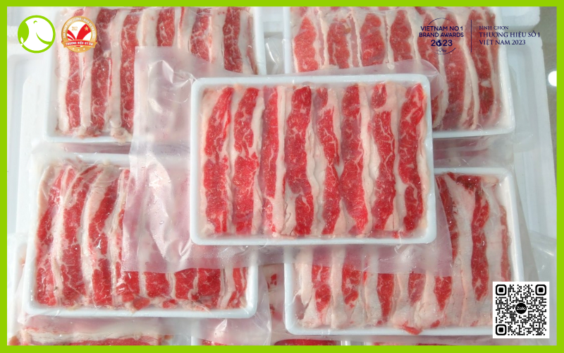 Quá trình sơ chế, hút chân không, đóng khay, cấp đông Ba Chỉ Bò Mỹ Cắt Lát vệ sinh sạch sẽ đảm bảo chất lượng, an toàn cho sức khỏe người tiêu dùng. Thịt được pha cắt bằng máy Cắt công nghiệp, cắt mỏng cho món lẩu theo tiêu chuẩn độ dày 1mm hoặc cắt lát 4mm - 5mm phù hợp cho món nướng...