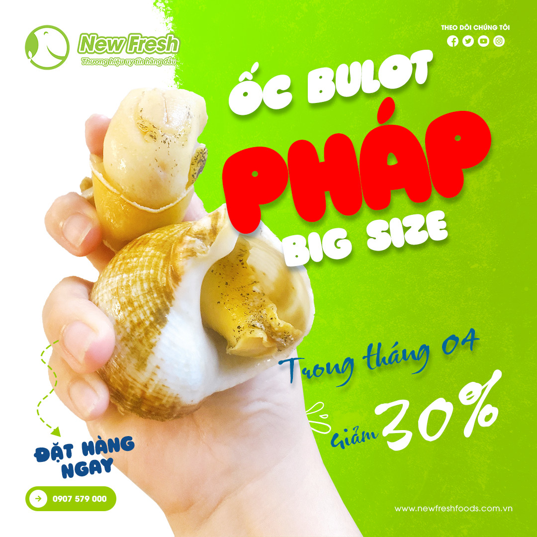 Chào đón tháng 4 với ưu đãi cực sốc từ nhà New Fresh - giảm 30% sản phẩm Ốc Bulot Pháp size đại