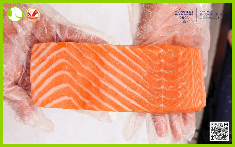 Kiểm tra màu sắc: Chọn miếng cá có màu cam tươi sáng, đồng đều.