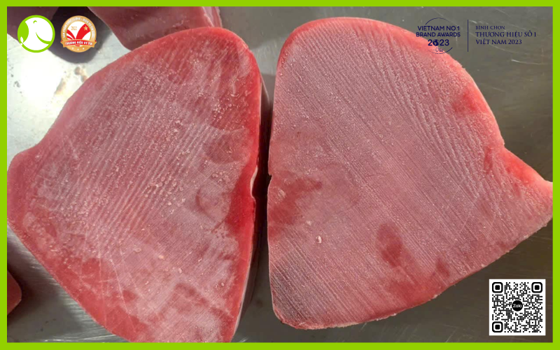 - Cá được chế biến sau đó đóng gói và hút chân không, bảo quản theo quy trình khép kín đảm bảo giữ được độ tươi ngon và chất dinh dưỡng của cá ngừ. Cá ngừ cắt khúc đặc biệt được cắt thành khối đẹp mắt với màu đỏ hồng của thịt cá bắt mắt.