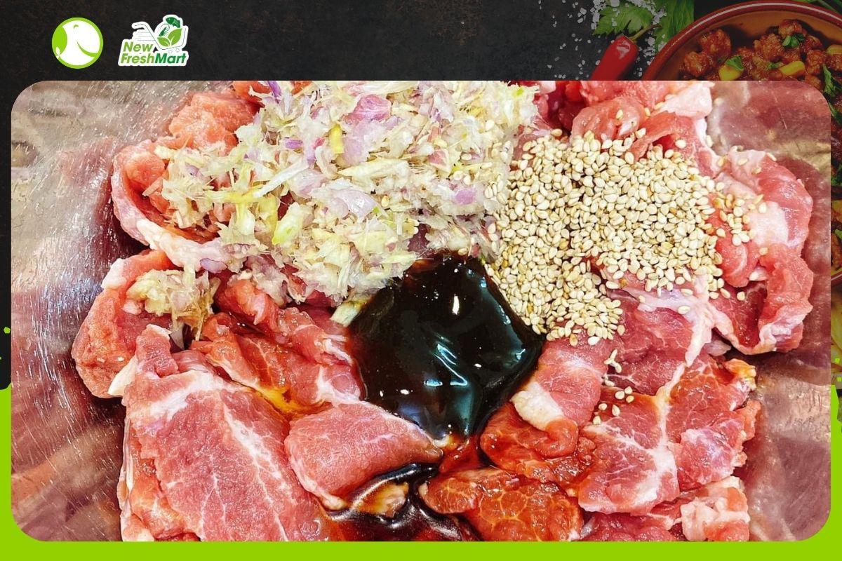 Sau khi cắt thịt xong không nên chế biến liền nên ướp với gia vị cho thịt thấm đậm đà hương vị. Bạn nên ướp với chút hạt nêm, nước tương và tỏi đập dập, hạt tiêu xay. Trong món kho hay xào thì nên bỏ 1 thìa dầu ăn vào trộn đều rồi để khoảng 20 phút, cách này giúp thịt được mềm, ngon và đậm đà hơn khi chế biến