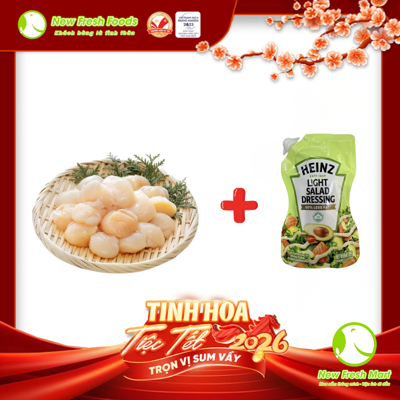 Cồi Sò Điệp Vn - Size 40/60 + Gói Heinz Light Salad Dressing