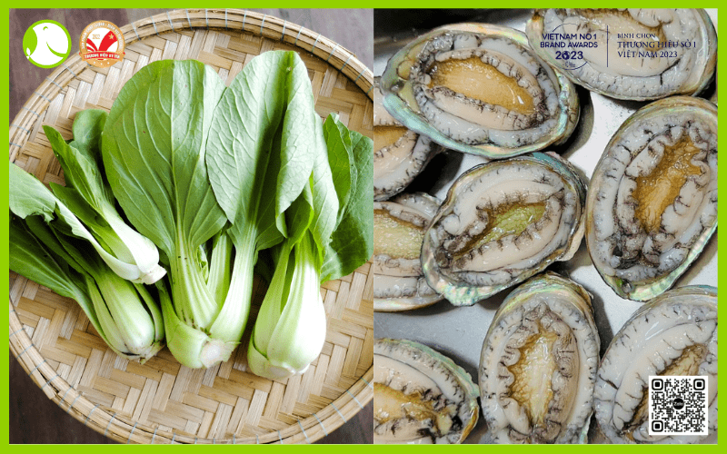 Cải thìa là loại rau có tính mát, vị ngọt nhẹ, chứa nhiều chất xơ, vitamin C, A, K và các khoáng chất như canxi, kali. Khi được xào cùng bào ngư, cải thìa không chỉ góp phần làm dịu vị mà còn cân bằng dinh dưỡng, giúp món ăn trở nên thanh mát, dễ tiêu hóa, rất thích hợp cho người cao tuổi hoặc đang trong giai đoạn hồi phục.