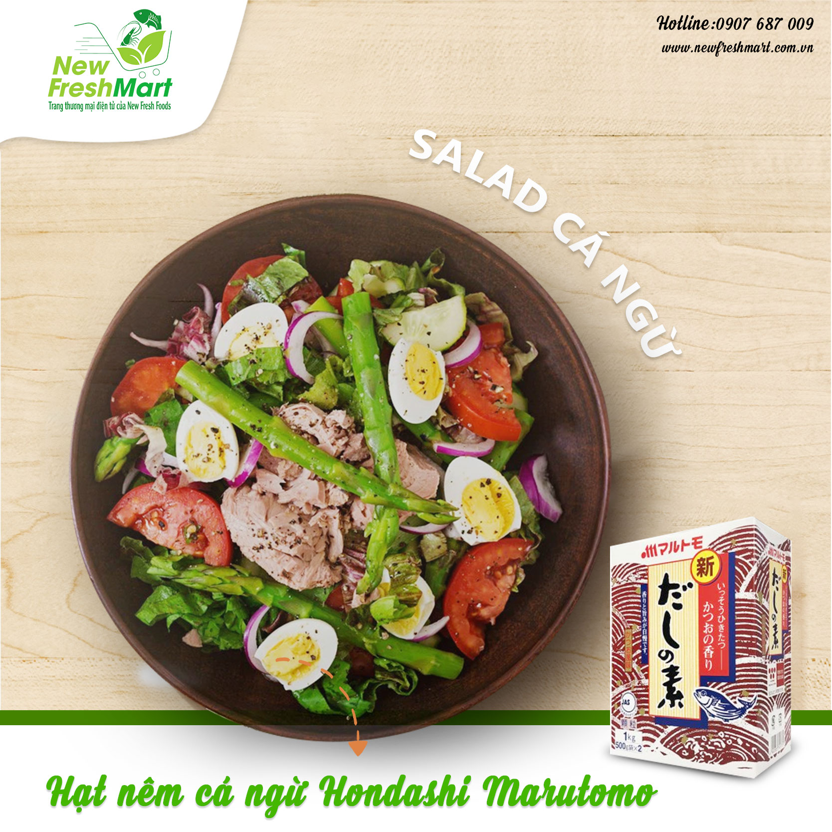 Trên đây là công thức chế biến món salad cá ngừ với gia vị hạt nêm cao cấp Hondashi Marutomo giúp khách hàng có thêm cho mình thực đơn ngon trổ tài năng nấu bếp cùng với gia đình mình nhé! https://newfreshmart.com.vn/bot-nem-ca-ngu-hondashi
