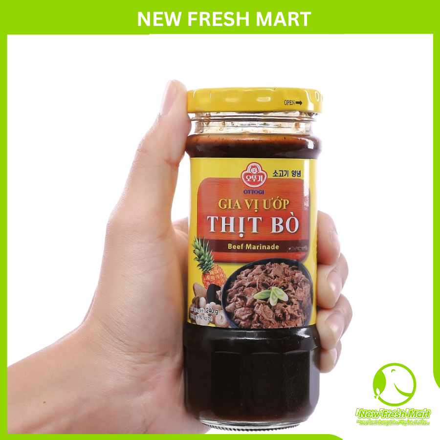 Gia vị ướp thịt bò Ottogi 240g là xốt gia vị nấu sẵn cao cấp đến từ thương hiệu Ottogi Hàn Quốc, giúp món thịt bò thấm vị nhanh, mềm ngon và dậy mùi thơm đặc trưng. Sản phẩm được pha trộn hài hòa từ các loại gia vị chọn lọc, phù hợp với khẩu vị người Việt và phong cách ẩm thực Á – Hàn.