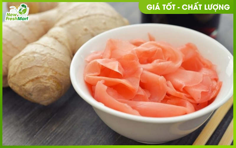 - Gừng hồng như một loại gia vị giúp cân bằng lại vị giác khi thưởng thức các món sushi khác nhau giúp miệng có thể cảm nhận hết vị ngon của mỗi miếng sushi khi ăn