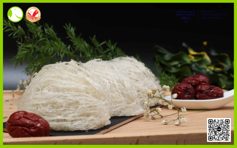 - Ngâm tổ yến vào nước sạch 60-90 phút, dùng tay tách từng lớp cho yến nở hết. Tách phần đế chân ra ngâm thêm vì sẽ lâu mềm hơn phần sợi. Không ngâm tổ yến vào nước nóng làm mất dưỡng chất của yến. Chưng cách thủy tầm 60 phút, có thể kết hợp dùng kèm đường phèn, hạt sen, táo đỏ, long nhãn...