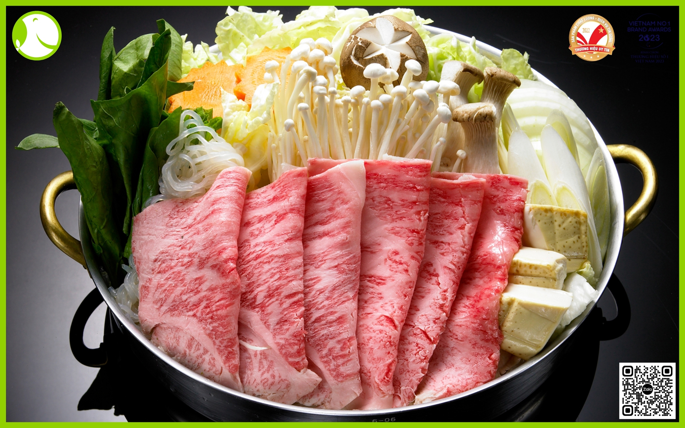 Sukiyaki là món thịt bò lát mỏng nấu cùng nước sốt ngọt mặn, còn Shabu Shabu là kiểu lẩu nhúng thanh nhẹ – giúp giữ nguyên hương vị tinh khiết của Wagyu Nhật A5.