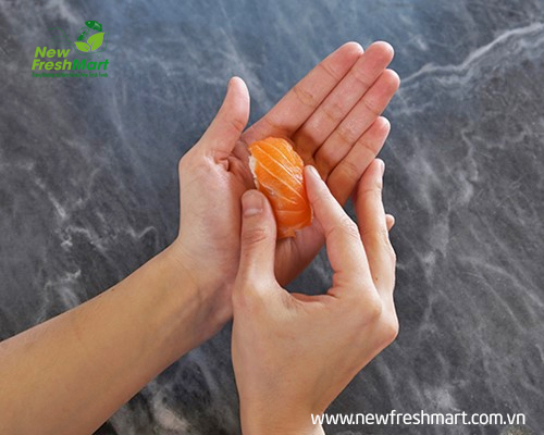 Nigiri dễ làm hơn maki, là món sushi được làm từ cơm sushi trộn giấm ( shari) và một lát cá hồi.