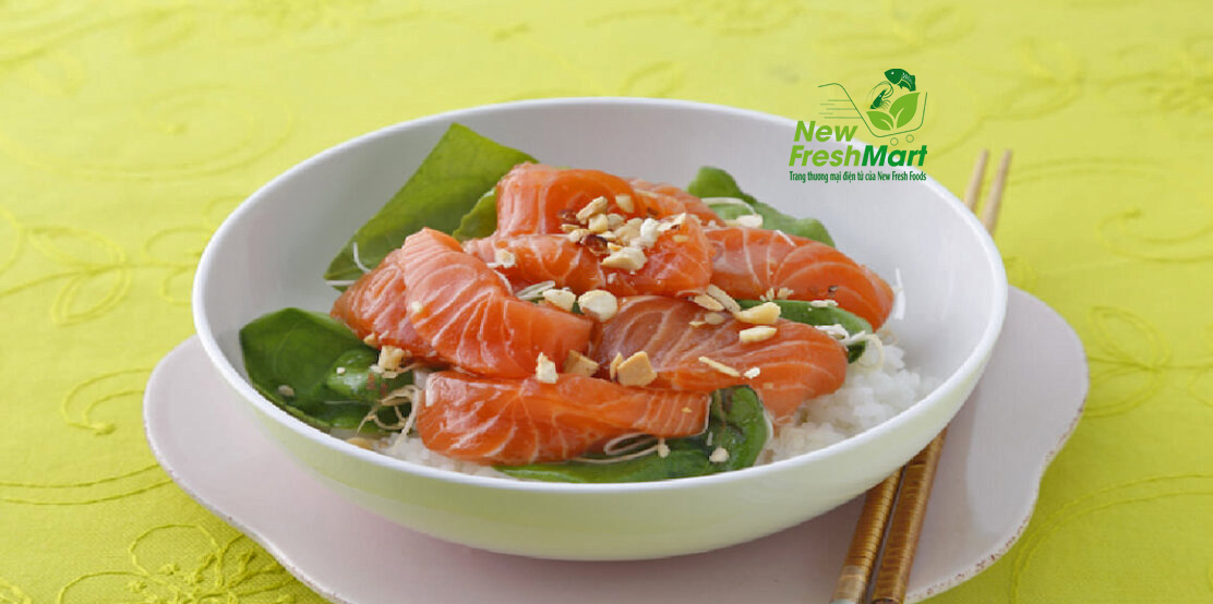 Salad cá hồi Nauy với cơm kiểu Trung Quốc