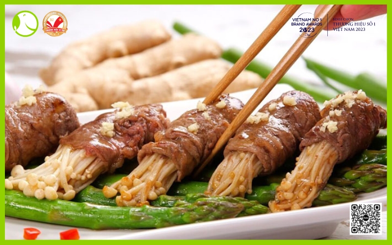 2.5. Lõi Vai Bò Mỹ Cuộn Nấm Kim Châm – Lạ Miệng, Đẹp Mắt