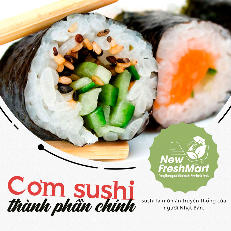 Sushi là món ăn truyền thống của người Nhật Bản, thành phần chính bao gồm cơm trộn giấm kết hợp với các loại thịt cá, hải sản, rau củ quả tươi, và thường được cuốn trong lá rong biển.