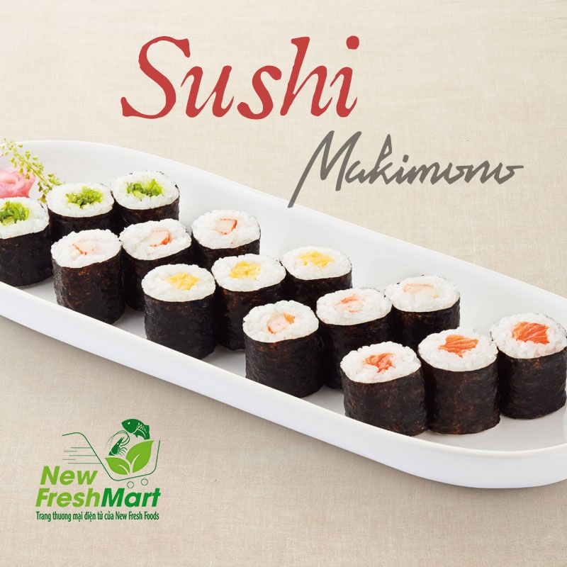 Makimono: Là loại sushi cuộn phố biến nhất. Thức ăn sẽ nằm giữa phần cơm, cuộn tròn trong một lớp rong biển và được cắt thành những khoanh nhỏ.