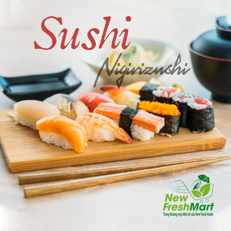 Nigirizushi: Là loại sushi nắm, gồm một nắm cơm nhỏ được trộn dấm, đắp lên trên là một miếng hải sản và bên trên là vài cọng hành thái nhỏ hoặc một chút gừng hồng xay nhuyễn.