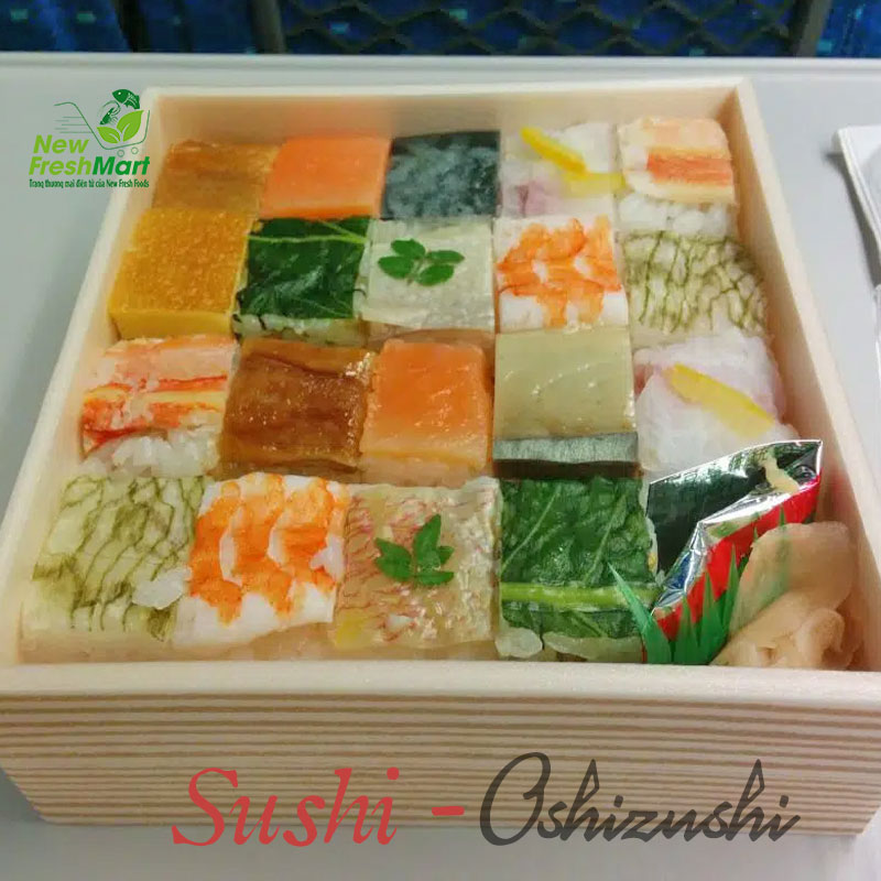 Oshizushi: Là loại sushi được ép trong khuôn gỗ, với 2 lớp cơm kẹp 1 lớp nhân, rồi cắt thành những miếng nhỏ hơn.