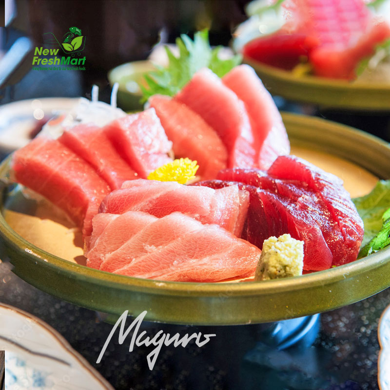 Maguro (Tuna): Được làm từ cá ngừ vây xanh, loại cá này được chia thành các cấp dựa trên hàm lượng chất béo. AKAMI xuất phát từ phần đầu của con cá, dọc theo xương sống và phần ít béo nhất. OTORO xuất phát từ bụng của cá, và là phần béo nhất.
