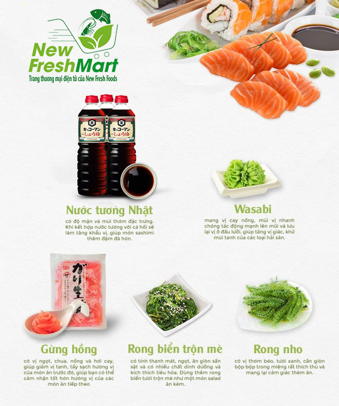 Các gia vị ăn cùng như mù tạt hay nước tương trong hai món ăn này đều có vai trò rất quan trọng, quyết định hương vị của món cá sống hoặc cơm cuộn mà bạn sẽ thưởng thức. Vì thế, hãy luôn chọn sản phẩm wasabi và nướng tương chuẩn Nhật cho vị hảo hạng.