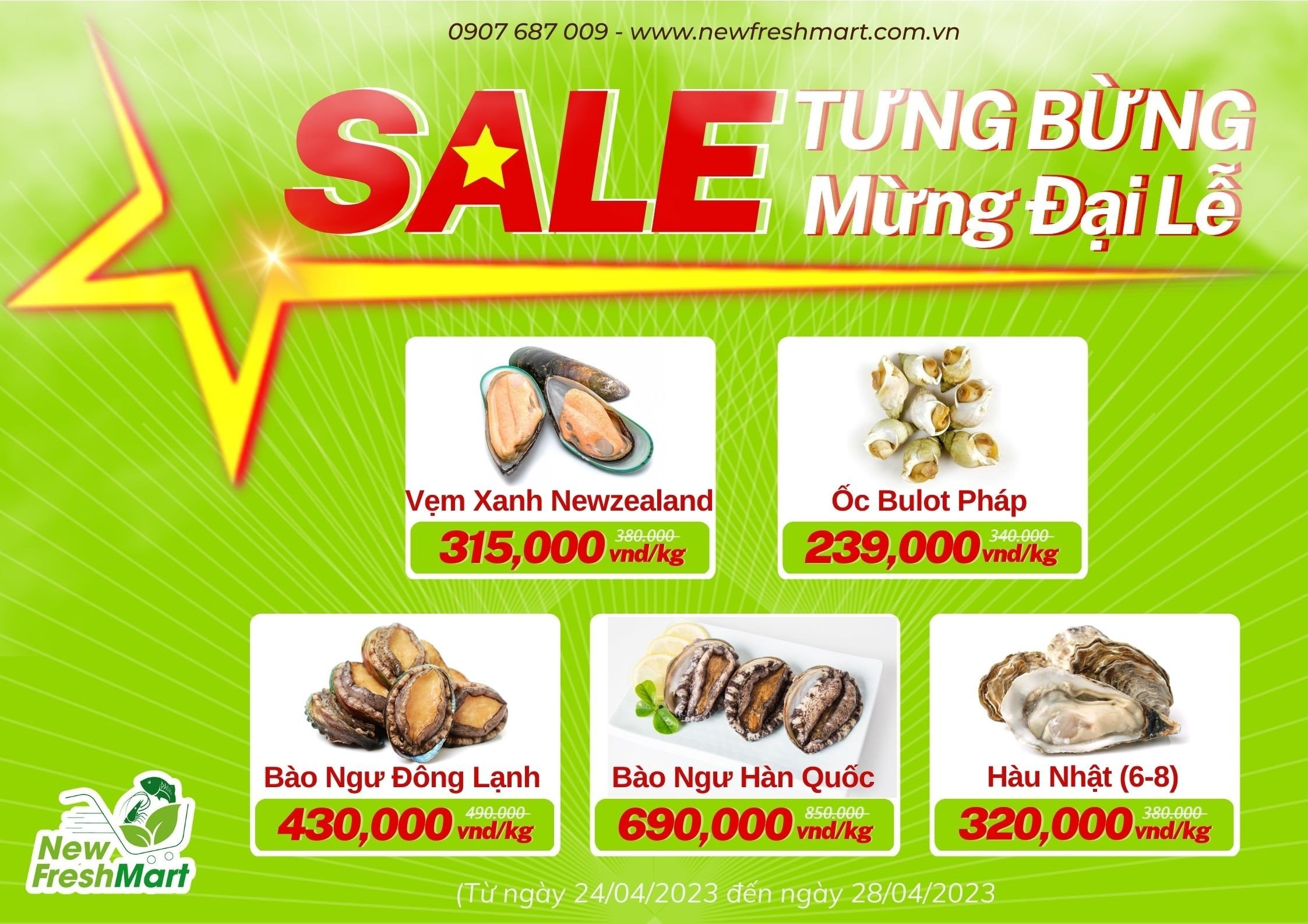 28/08/2025Mừng Quốc khánh cùng New Fresh với combo hải sản 499K, 699K, 999K. Đặt đơn từ 399K FREESHIP toàn quốc. Ưu đãi chỉ có dịp lễ!