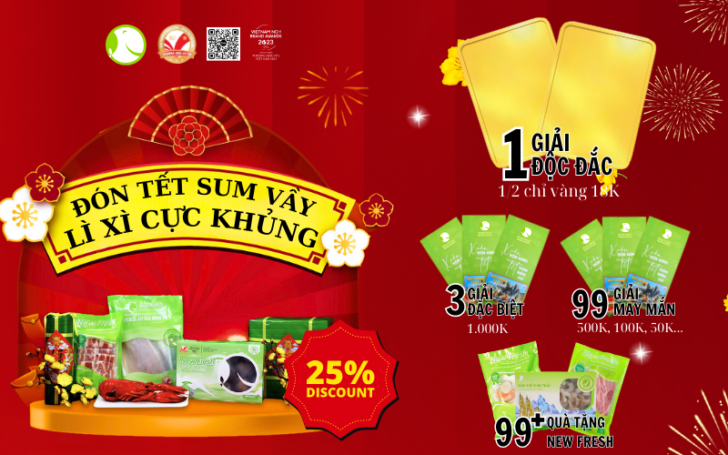 - Mỗi set quà đều được tặng kèm 1 bao lì xì New Fresh với giá trị lên đến ½ CHỈ VÀNG 18K