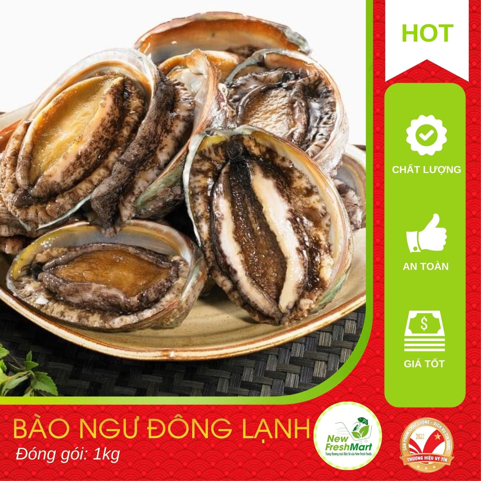 - Đóng gói: 500gr Cá tuyết Nauy cắt khoanh + 1kg Cồi sò điệp New Fresh + 1kg Bào ngư đông lạnh 10-12