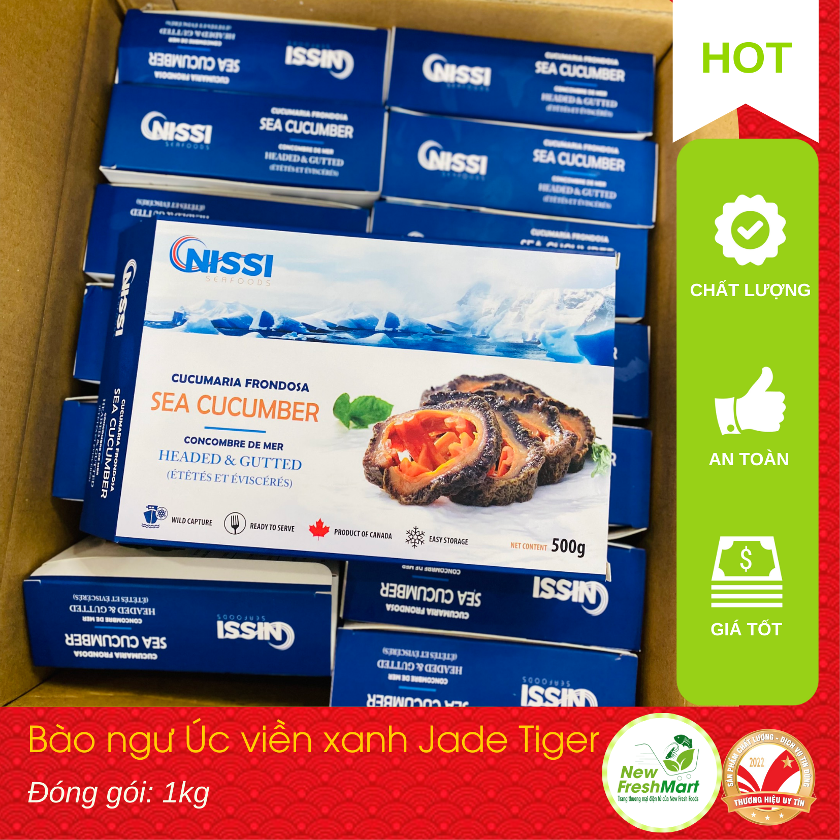 - Đóng gói: 1kg Cồi sò điệp Nhật New Fresh + 1kg Bào ngư Úc viền xanh Jade Tiger + 100gr Vi cá khoanh + 1 hộp Hải sâm Nissi