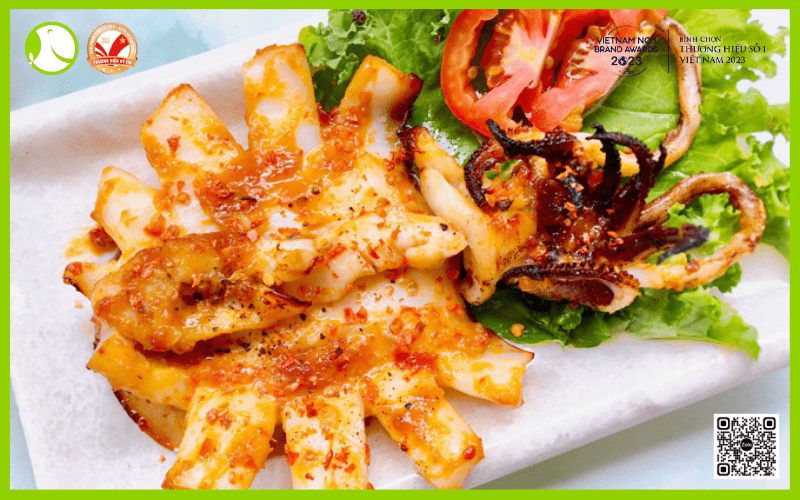 Mực nang chiên giòn: Lớp vỏ giòn tan bên ngoài, thịt mực mềm dai bên trong, ăn kèm sốt mayonnaise cực ngon.