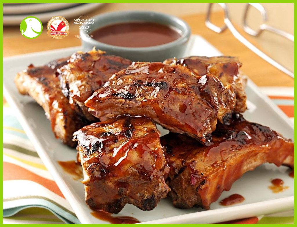 Ướp thịt nướng: Dùng để ướp các loại thịt chính trong tiệc BBQ như Sườn Heo (Ribs), Thịt Ba Chỉ, Gà (Cánh, Đùi) hoặc Thịt Bò. Ướp trong vài giờ hoặc qua đêm giúp thịt thấm sâu hương vị.