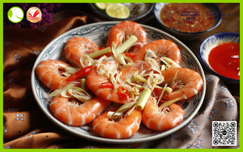 Tôm sú hấp nguyên con được sơ chế, hấp chín và bảo quản đông lạnh, không chỉ tiện lợi mà còn đảm bảo được độ tươi ngon giòn và dai khi ăn