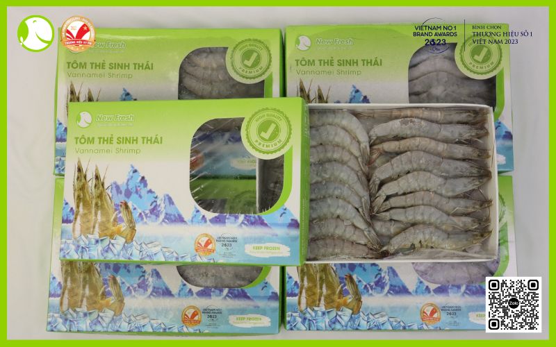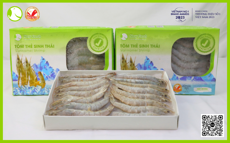 Tôm thẻ sinh thái được New Fresh Foods cấp đông từ hàng sống theo tiêu chuẩn xuất khẩu, đảm bảo giữ chất lượng của tôm đạt mức cao nhất.