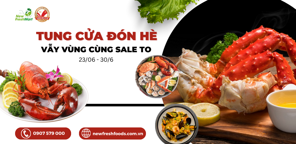 Đón hè rực rỡ với ưu đãi cực hấp dẫn của New Fresh Foods. Chỉ có trong tháng 6 GIẢM SÂU các sản phẩm hải sản đến thực phẩm từ các thương hiệu chất lượng hàng đầu: