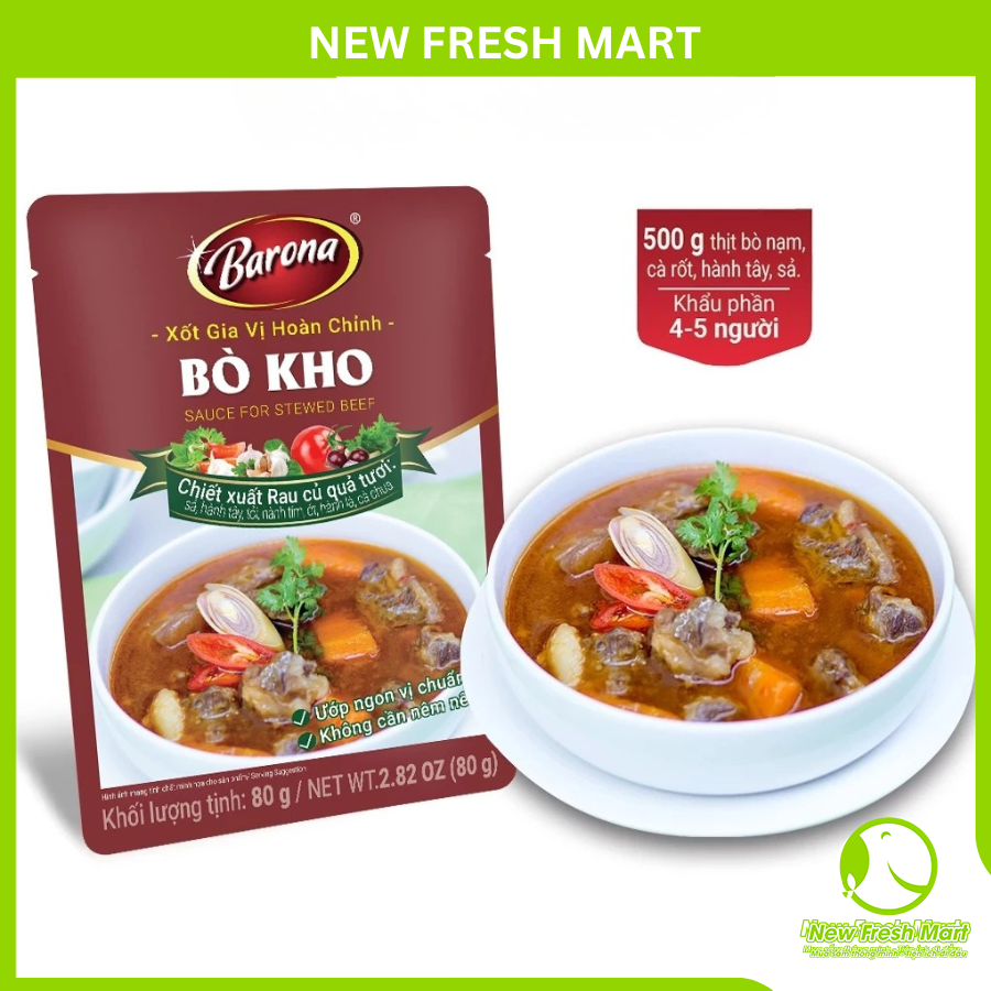 Bò kho là một trong những món ăn truyền thống được yêu thích trong ẩm thực Việt Nam, nổi bật với hương vị đậm đà của thịt bò mềm tan, nước xốt màu đỏ gạch sóng sánh cùng mùi thơm đặc trưng của ngũ vị và sả. Xốt Bò Kho Barona là gia vị hoàn chỉnh mang đến sự tiện lợi, giúp bạn chế biến món bò kho chuẩn vị, thơm ngon như nhà làm mà không cần phải tốn thời gian cân đo đong đếm gia vị.