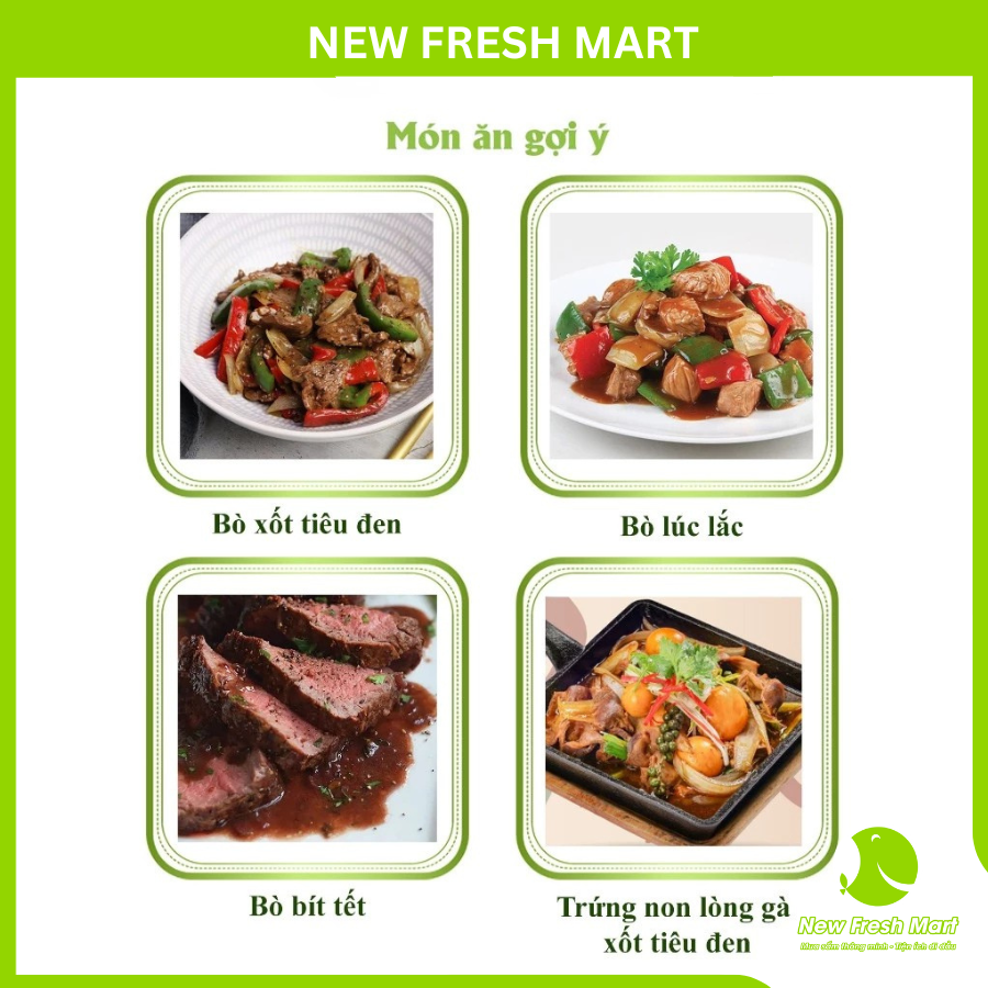 Tiện lợi cho món xào/kho: Đây là gia vị hoàn chỉnh chuyên dùng cho món bò xốt tiêu đen (hoặc các món xào, kho từ thịt bò khác), giúp tiết kiệm thời gian nêm nếm các loại nước tương, dầu hào, đường và tiêu.