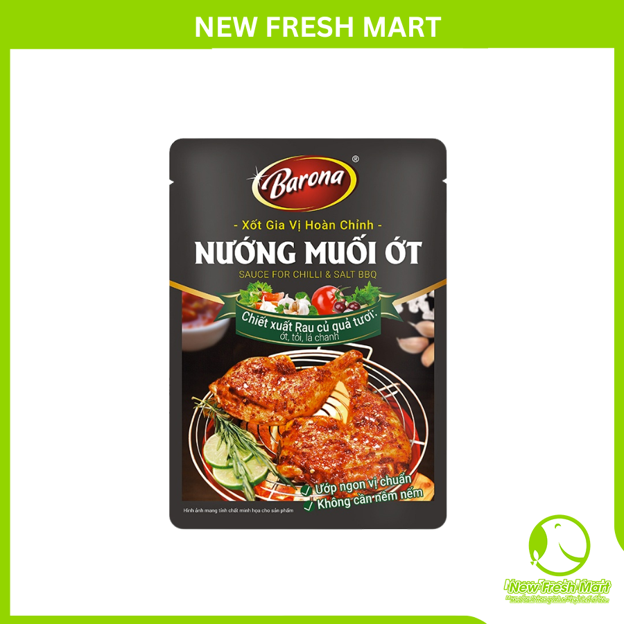 Xốt Nướng Muối Ớt Barona là sự kết hợp độc đáo giữa vị cay của ớt, vị mặn của muối và các gia vị nền (như tỏi, hành, đường) để tạo nên một hỗn hợp xốt ướp và phết nướng hoàn hảo.