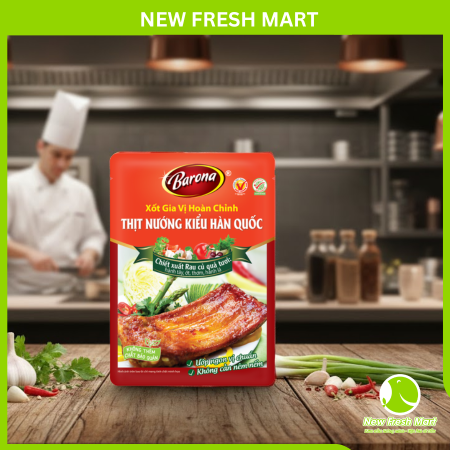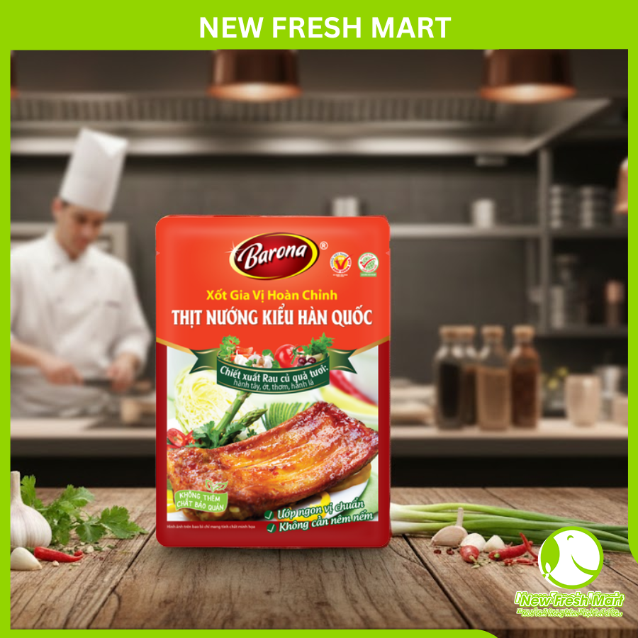 Món thịt nướng theo phong cách Hàn Quốc luôn được yêu thích bởi hương vị cay nhẹ, ngọt dịu và đậm đà của tương ớt Gochujang cùng các loại gia vị đặc trưng. Xốt Thịt Nướng Hàn Quốc Barona mang đến giải pháp gia vị hoàn chỉnh để bạn dễ dàng thực hiện món ăn nổi tiếng này ngay tại nhà.
